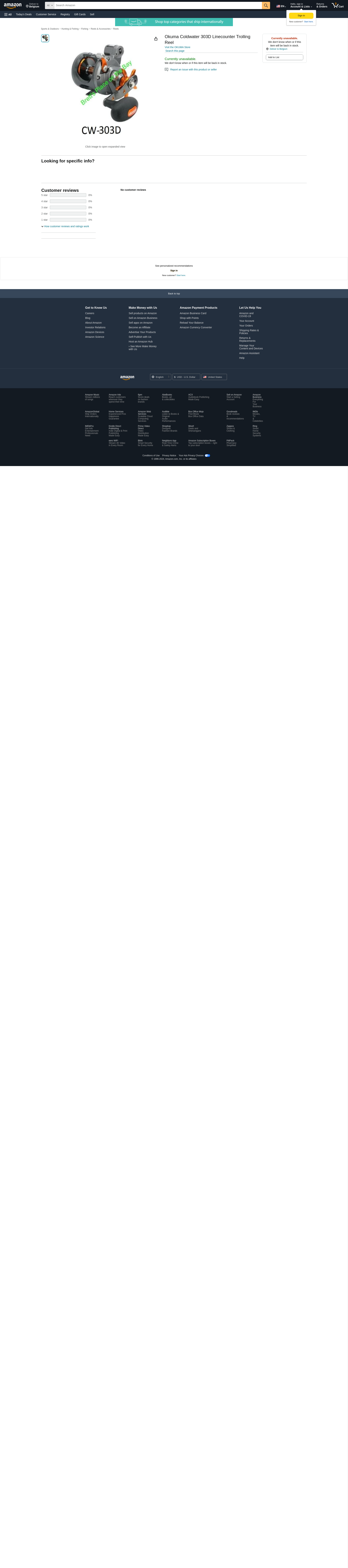 877-442-7388Okuma Coldwater 303D Linecounter Trolling ReelServing anglers with a premium linecounter reel in both right and left hand retrieve, Okuma proudly introduces the Cold Water. The Cold Water family is constructed upon a powerful star drag foundation including heavy-duty machine cut brass gears, dual anti-reverse systems and full Carbonite drag system with up to 20-pounds of maximum drag output Lightweight corrosion resistant frame and side plates Multi disc Carbonite drag system Ratcheting drag star for precise drag settings XL gearing: Drop down gear box with self lubricating gear wystem