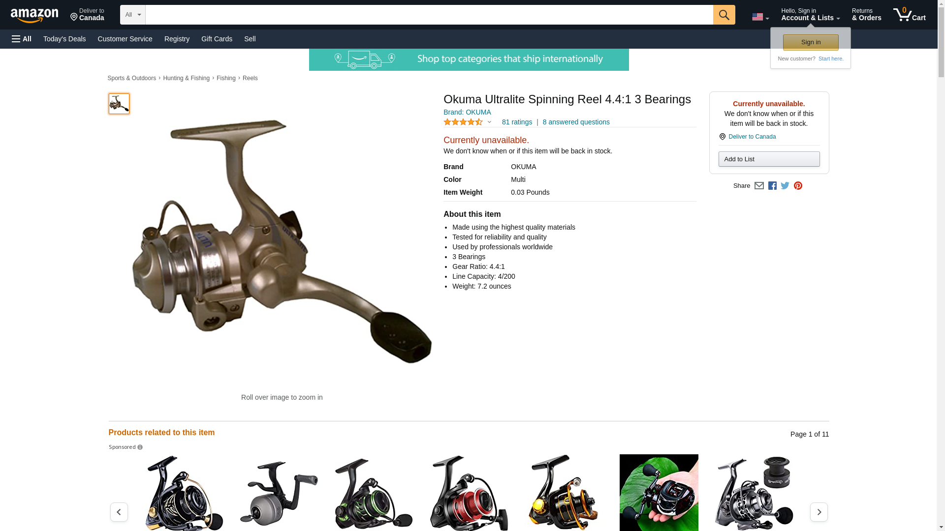 Okuma Ultralite Spinning Reel 4.4:1 3 Bearings