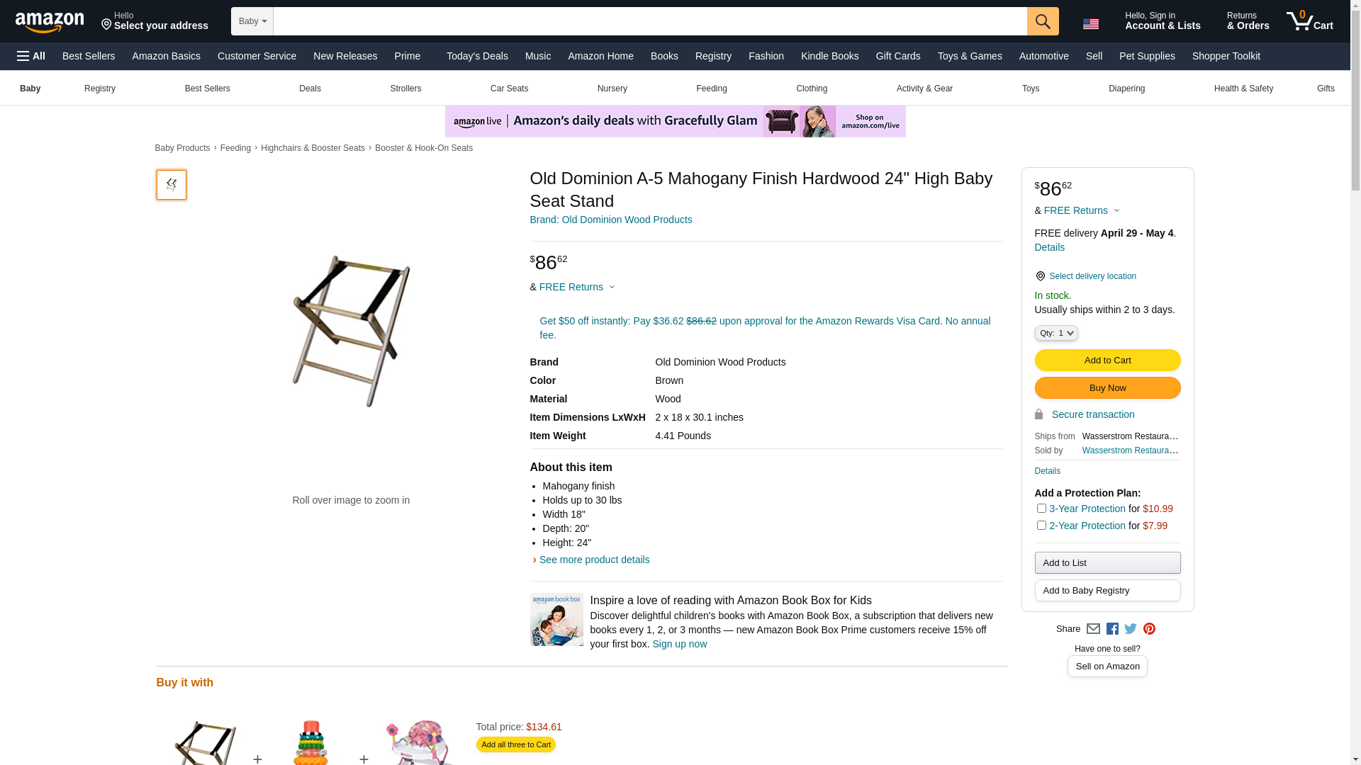 | Feature | Wooden Infant Carrier Stand Specify Finish 1 Each A-2 WALNUT |