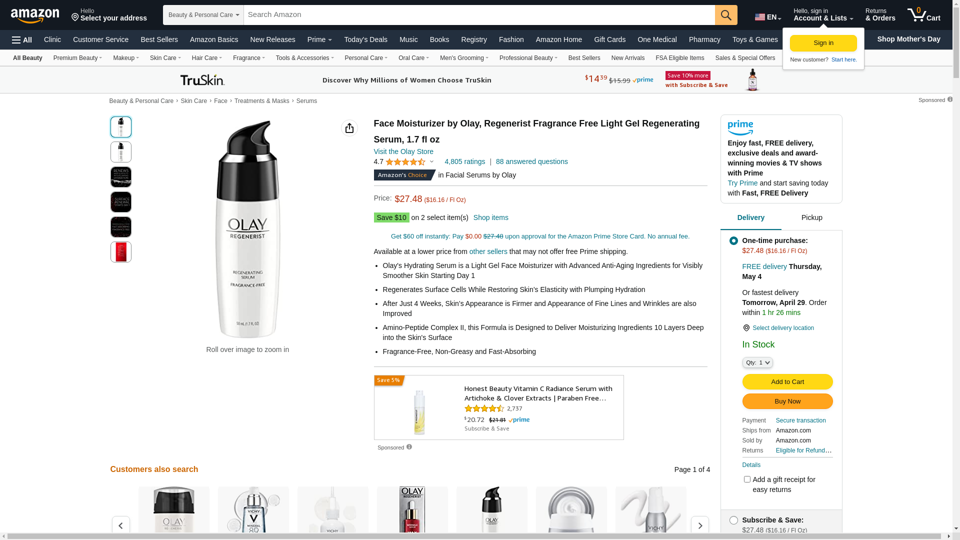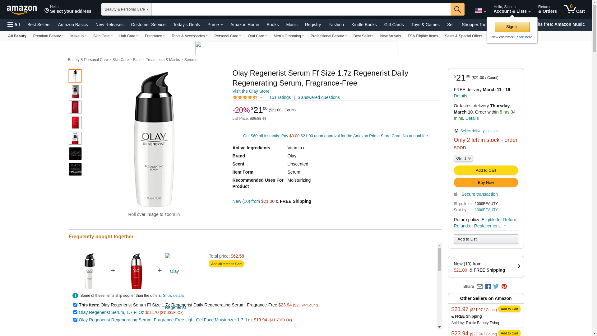 Olay Regenerist Serum Ff Size 1.7z Regenerist Daily Regenerating Serum, Fragrance-Free: Maxedbuy.com