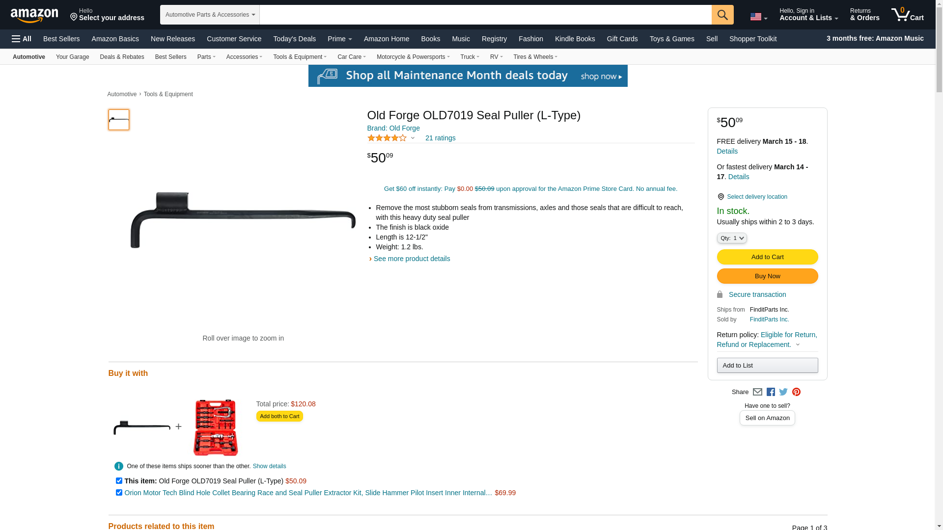 OLD7019 Features: -Remove the most stubborn seals from transmissions, axles and those seals that are difficult to reach, with this heavy duty seal puller. -Length is 12-1/2". -L-Type Seal Puller. -The finish is black oxide. Product Type: -Pullers. Use: -Seal. Quanitity: -Single. Generic Dimensions: -Weight: 1.2 lbs.. Dimensions: Overall Height - Top to Bottom: -1.5 Inches. Overall Width - Side to Side: -4.6 Inches. Overall Depth - Front to Back: -13.5 Inches. Overall Product Weight: -1.25 Pounds.
