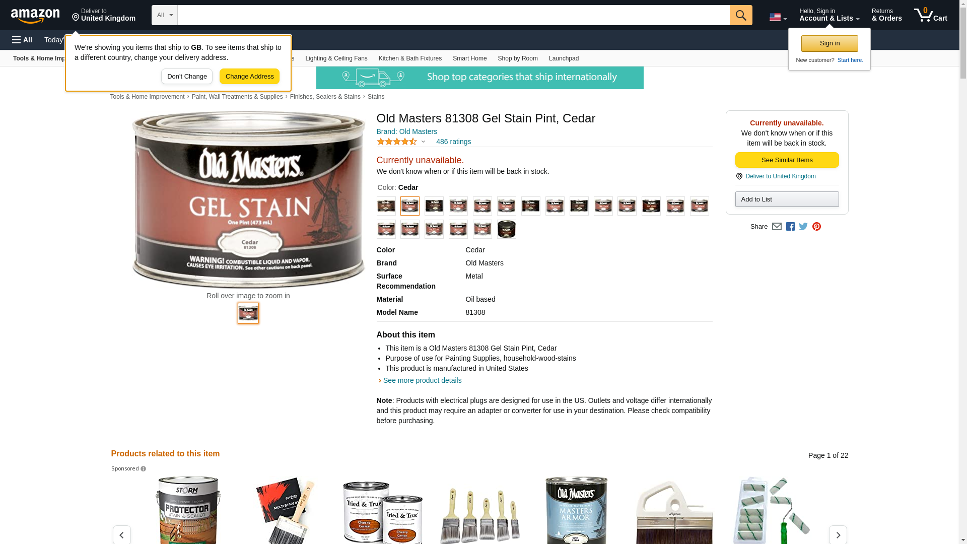 - This item is a Old Masters 81308 Gel Stain Pint, Cedar