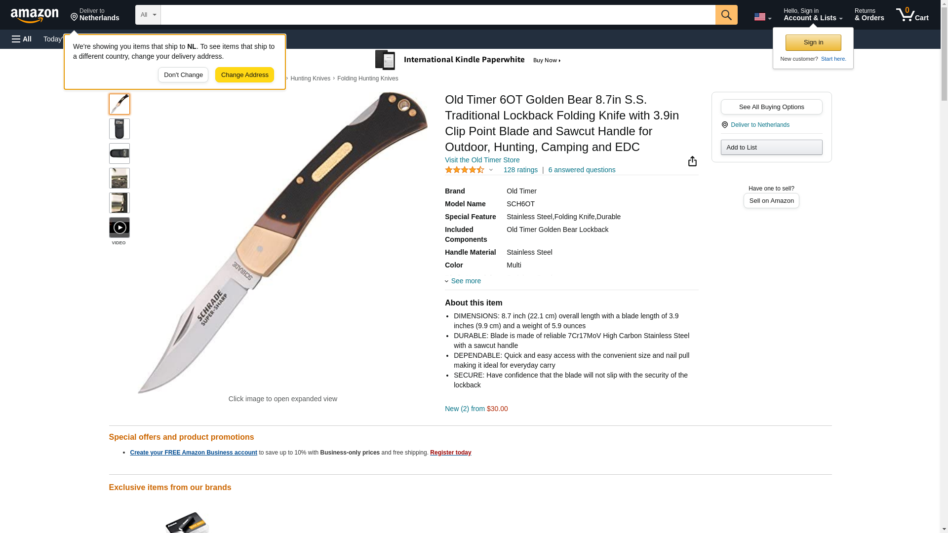 Old Timer 6OT Golden Bear Traditional Lockback Pocket Knife with 3.9in High Carbon Stainless Steel Clip Point Blade, Sawcut Handle, and Lanyard Hole for Hunting, Whittling, Camping, EDC, and Outdoors