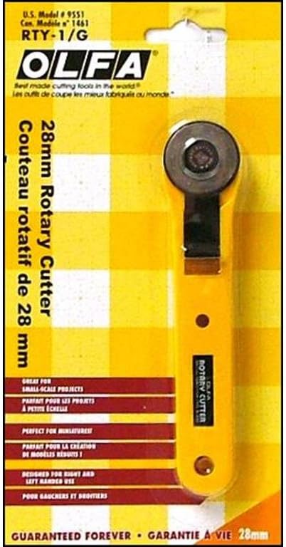 - Olfa rotary cutter 28mm- unique and versatile, rotary cutters allow you to cut in any direction, backward or forward, straight or curved