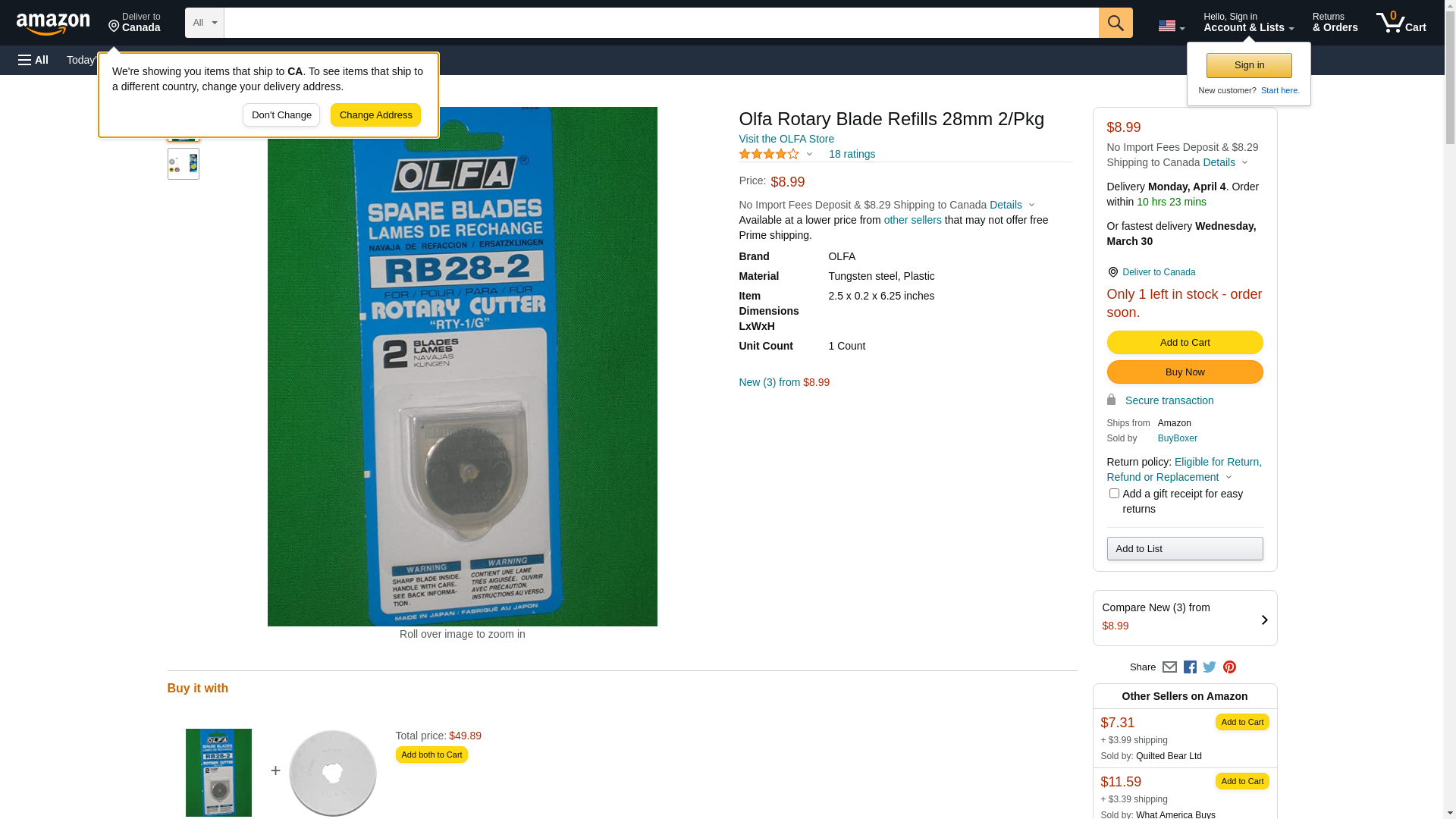 OLFA Rotary Blade 28mm 2pk Refill. These 28mm replacement blades are for OLFA's 28MM Rotary Cutter (not included). Two blades come in a plastic container that you can use later for storage. Made from high quality tungsten steel for durability and superior edge retention. This package contains two 28mm rotary blades and a plastic container for easy storage. WARNING: Cut Hazard, Sharp Blade. Contact may result in injury. Always keep blades away from fingers and body. Handle with Care. Keep out of reach of children. RB28-2, 9561. Imported.