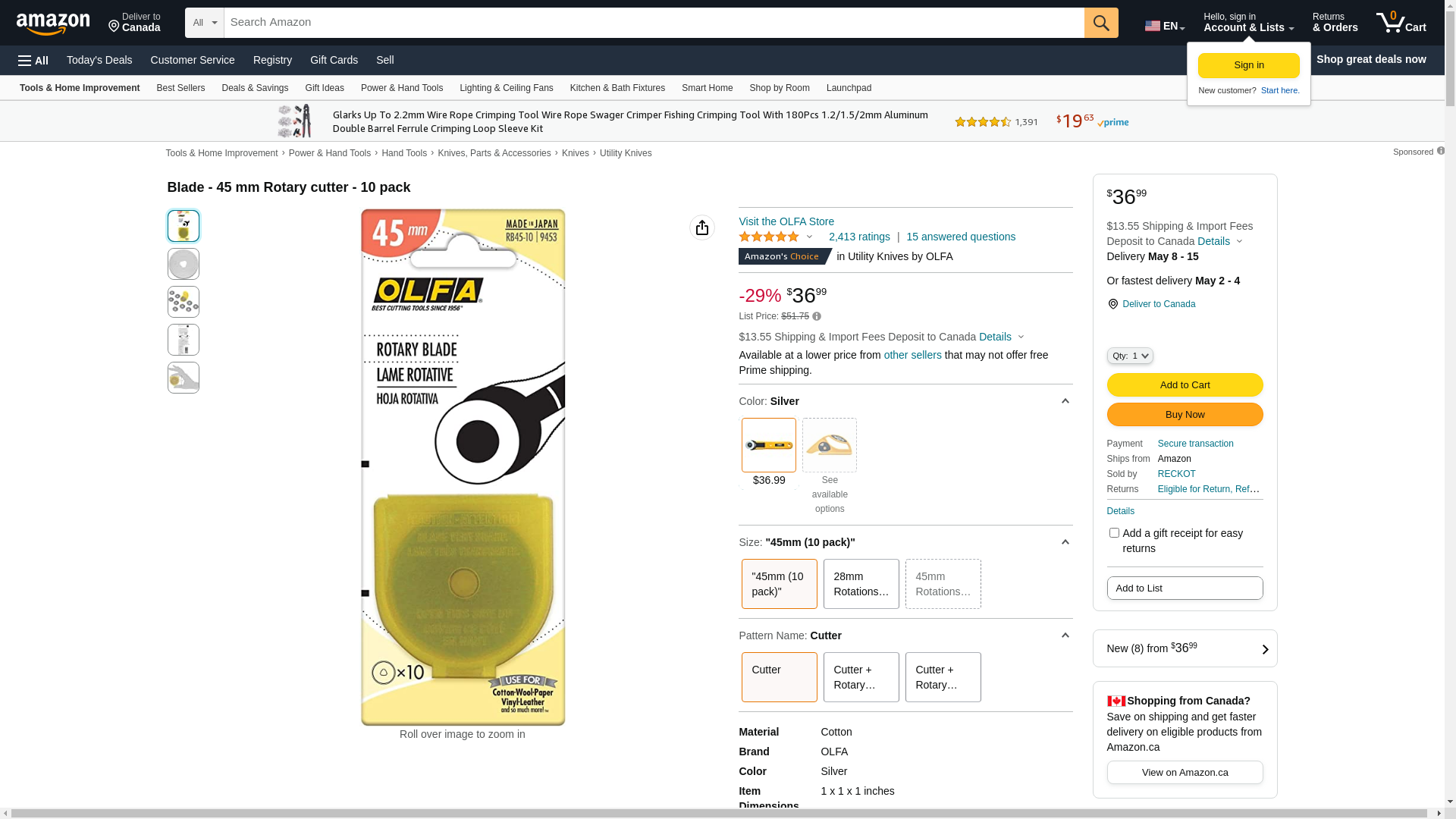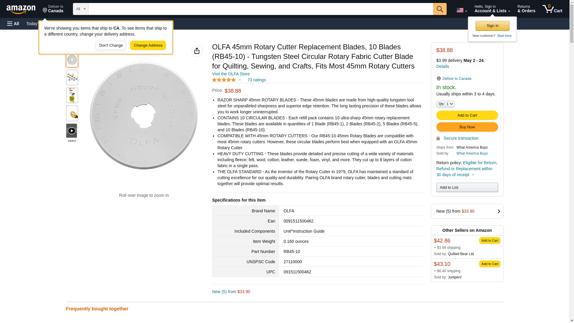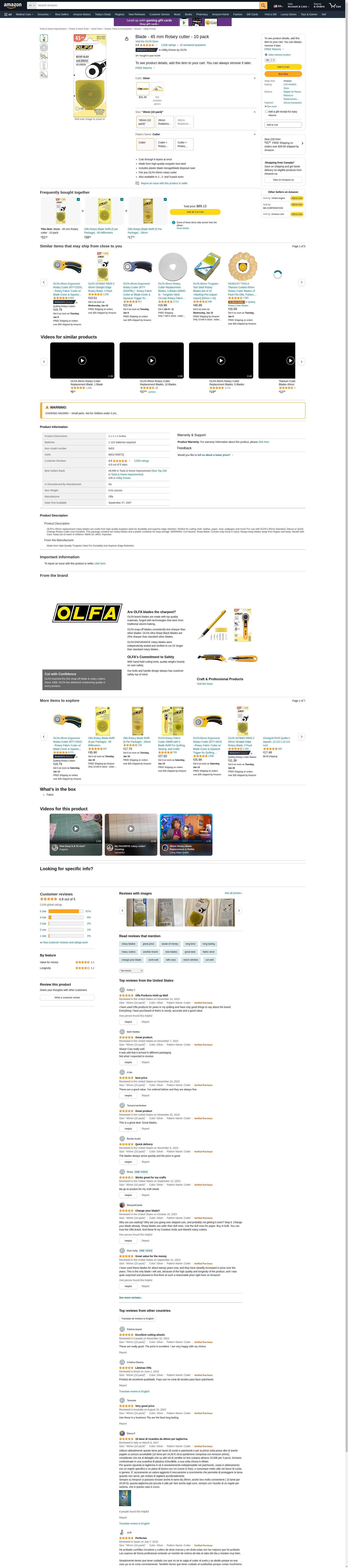 OLFA 45mm Rotary Cutter Replacement Blades, 10 Pack (RB45-10): These blades are made from high-quality tungsten tool steel for unparalleled sharpness and superior edge retention. The long lasting precision of these blades allows you to work longer uninterrupted. Each refill pack contains 10 ultra-sharp 45mm rotary replacement blades. Our RB45-10 45mm Rotary Blades are compatible with most 45mm rotary cutters. However, these circular blades perform best when equipped with an OLFA 45mm Rotary Cutter and an OLFA Cutting Mat. Great for cutting fleece, felt, wool, cotton, leather, suede, foam, vinyl, and more. They cut up to 8 layers of cotton fabric in a single pass. About OLFA: Ever since Yoshio Okada, the founder of OLFA CORPORATION, invented the world's first snap-off blade cutter in 1956, OLFA has been committed to developing practical and safe hand-held cutting tools. OLFA brand blades are made with top quality materials, forged with technologies that stem from traditional sword-making, sharpened with technologies that give a blade life, and ultimately finished with the craftsmanship that brings all of this together. The holders and handles that allow users to gain the full cutting performance of these high-quality blades are designed, developed, and manufactured in Japan and subjected to stringent quality checks throughout the process. OLFA is proud of the unwavering quality that goes into every product it makes.