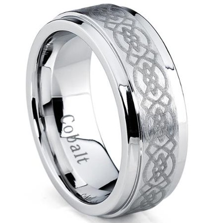 <li>Made from cobalt chrome for strength</li> <li>Features a raised center with laser etched Celtic design and highly polished sides</li> <li>Resists scratches and is hypoallergenic</li>