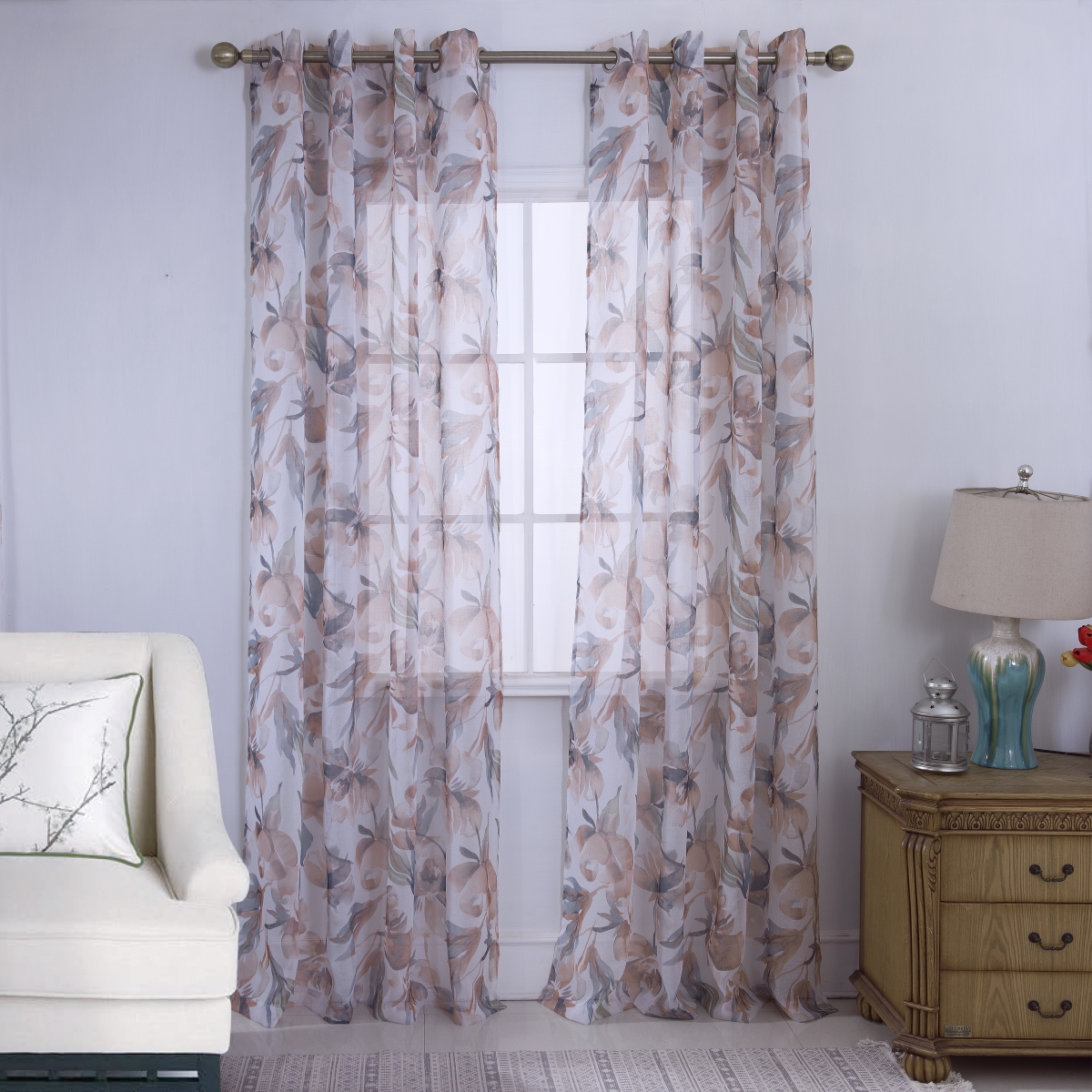 Olivia Gray PND28390 54 x 90 in. Destin Floral Printed Doily Single Grommet Curtain Panel - Taupe