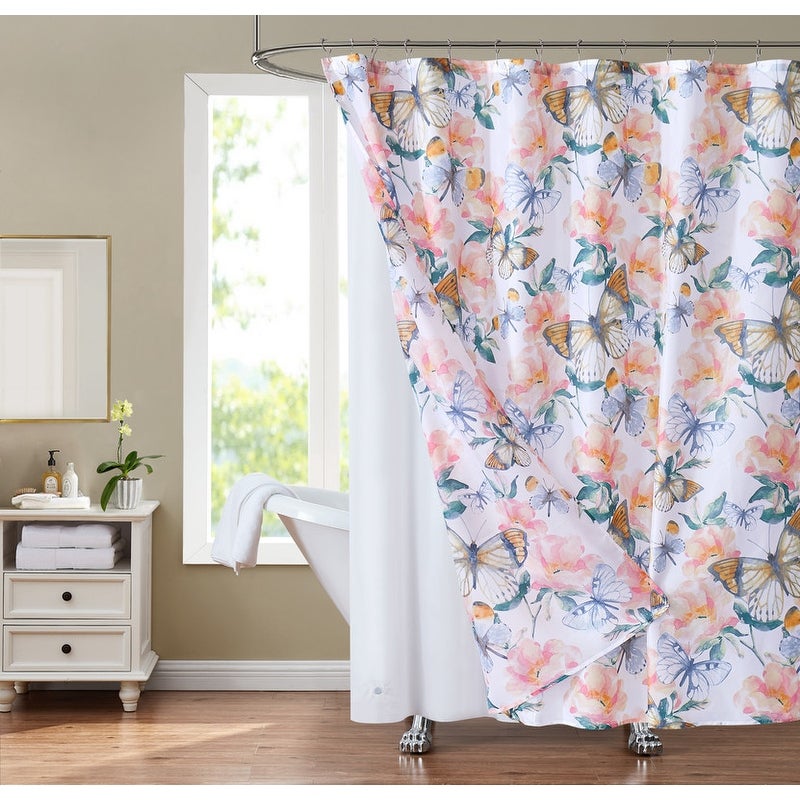 Olivia Gray SCSPB082 Sunset Park Shower Curtain & Liner Set, Butterflies - 14-Piece