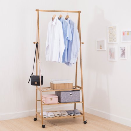 <ul> <li>100% SOLID BAMBOO - It is strong, durable and flexible. The natural and smooth finish, rounded corners can protect your coat, hat, and clothes from being scratched when you take them on and off, it also protect your family from being scratched<br /></li> <li>SPACE-SAVING SHELVES - The 3 tiers for putting shoes, bags, suitcase, plants and other sundries. Perfect for putting one the entryway, living room, and balcony<br /><p></p></li> <li>ADDITIONAL SIDE HOOKS - 4 hooks aside are capable of hanging your coats, scarves, bags or hats, providing you extra space<br /><p></p></li> <li>SWIVEL CASTERS - With wheel design, easy for you to move. And the 4 wheels can also be removed when using<br /><br />EASY INSTALLATION - Simple assemble need with instruction included. Overall dimension(L x W x H): 27.6''x 16.7''x 70''<br /><p></p></li> </ul>