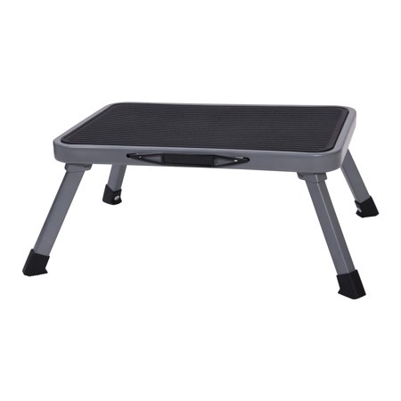 <br>Easy fold away and lock design. Opens and closes in seconds for convenient portability. <br><br>Just 4 pounds, it’s lightweight enough to carry wherever you want it in a hurry. And the carrying handle means you can use it on the go. <br><br>It features sturdy steel construction which holds up to 330 pounds, bottom reinforced with non-slip grips. <br><br>Certificated To European Commission EN14183 <br><br>Ideal for the elderly, the disabled, children or any user looking for the perfect step stool to reach what you need and when there is an extra step up needed. <br><br>And the step stool is not only used as a ladder, also can be used as a seat for fishing, gardening. <br><br><b>Specification </b> <br><br>Net Weight: 4 lbs <br><br>Max. Load: 330 lbs <br><br>Number of Ladder Step: 1 <br><br>Material: Steel + Polypropylene(PP) <br><br>Platform size: 15" x 10.2" <br><br>Folded Size: 15" x 10.2" x 1.8"(L&W&H) <br><br>Extension Size: 18” x 13” x 6.8” (L&W&H) <br><br>Package Size: 15.4" x 10.6" x 2"(L&W&H) <br><br>Slight deviation may occur during measurement, please take care and thanks for your understanding. Approved by European Safety Standard EN14183 <br><br><b>Package </b> <br><br>1 x Folding Step Stool <br><br><b>Note</b> <br><br>For your safety, please do NOT jump on the Step Stool