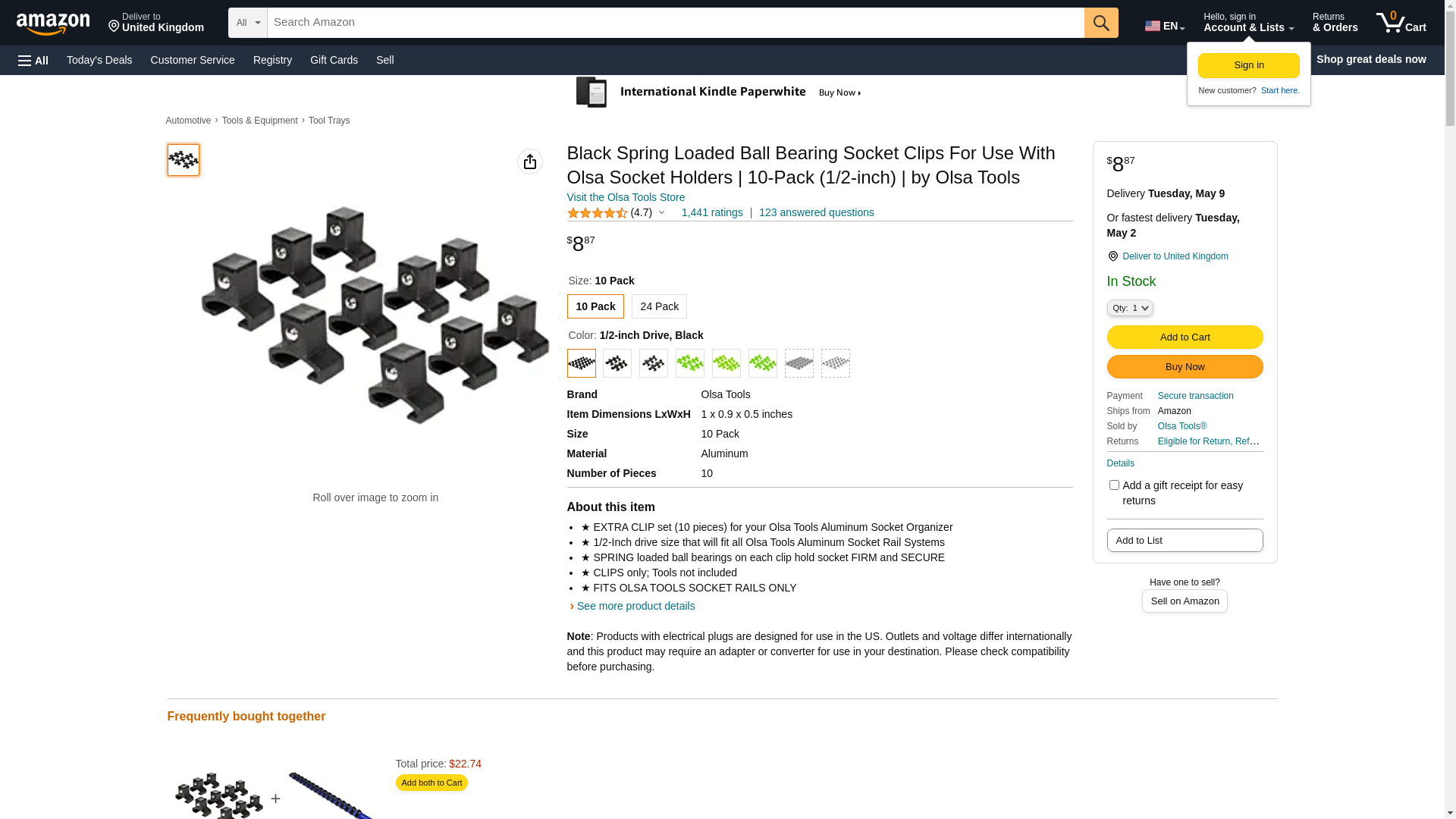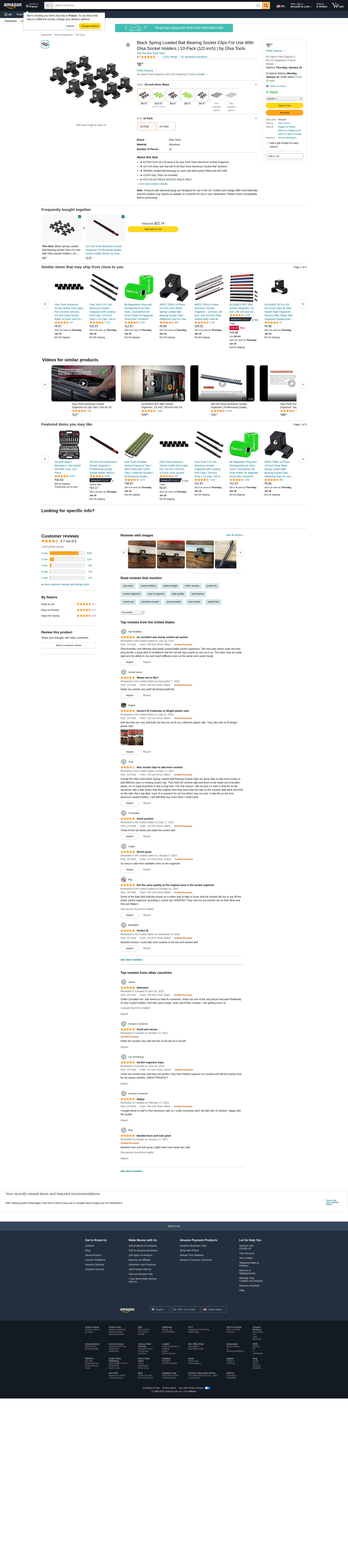 Olsa Tools 3/8-Inch Drive Socket Clips Will fit any Olsa Tools Aluminum Socket Organizer Rail Holds your sockets and makes it easy to put on and remove The spring loaded ball bearing clips hold the sockets tightly in place and will keep them on holder even in upside down applications. Can be used with shallow and deep sockets. Customize to your needs Add, remove, and insert clips on any portion of the socket rail to fit your custom set of tools. Socket clips slide into place, can be easily re-positioned and installed between previously placed clips. This kit includes -(6) 3/8-inch Drive Socket Holder CLIPS * Rails and sockets are not included, only the clips. Click the "Add to Cart" button NOW to get your Olsa Tools 6 Pcs Kit of 3/8-inch drive clips