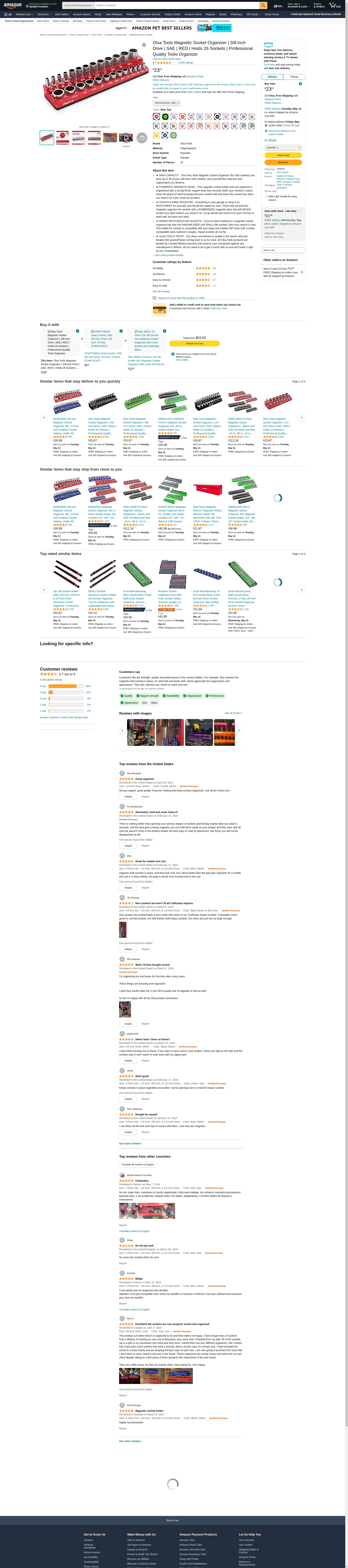Olsa Tools Magnetic Socket Organizer | 3/8-inch Drive | SAE RED | Holds 26 Sockets | Premium Quality Tools Organizer: Maxedbuy.com