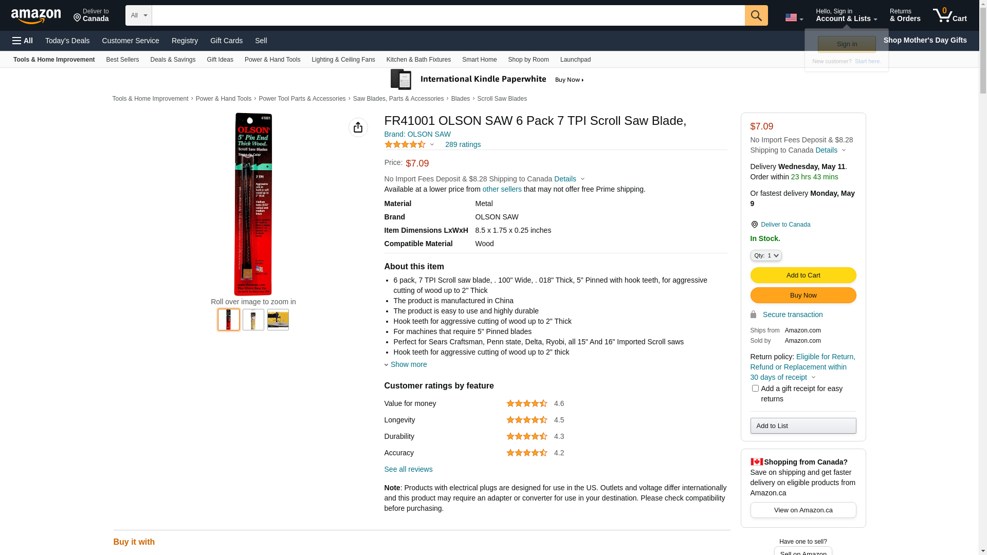 OLSON SAW FR41001 OLSON SAW 6 Pack 7 TPI Scroll Saw Blade,