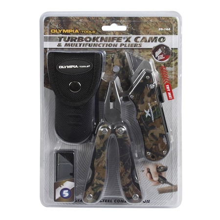 Olympia Tools Camo Turboknife X Utility Knife& Multifunction Pliers Set 33-164, Camo