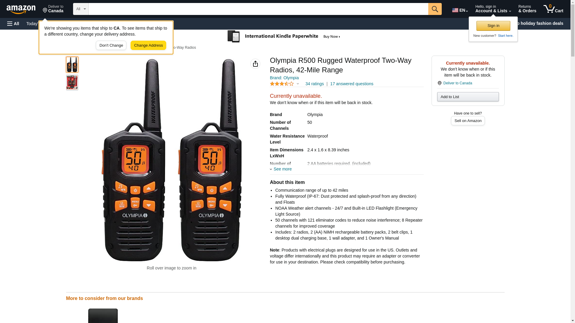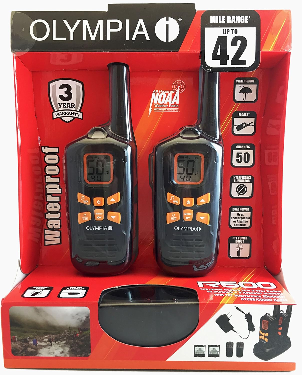 Olympia R500 Rugged Waterproof Two-Way Radios, 42-Mile Range