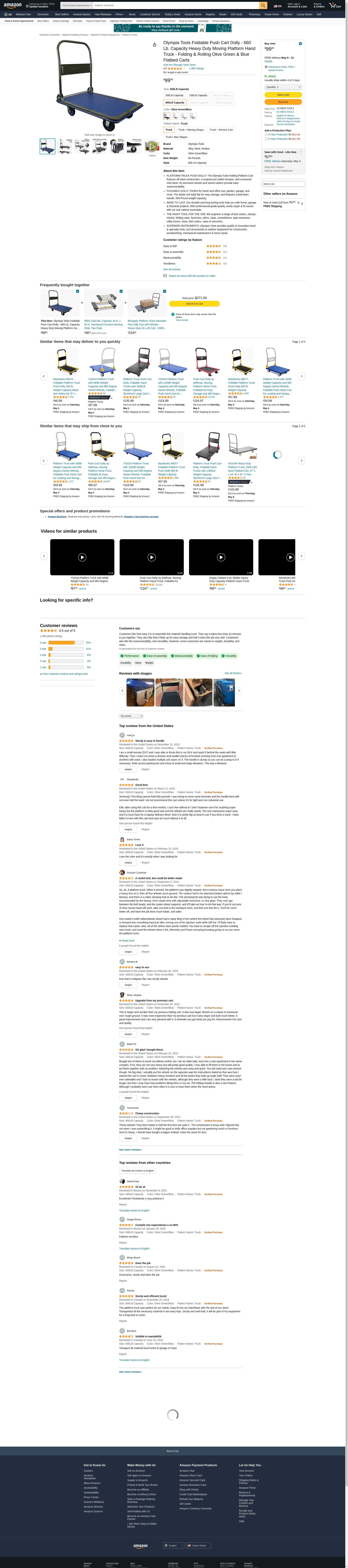 - PLATFORM TRUCK PUSH DOLLY: The Olympia Tools Folding Platform Cart features all-steel construction, a wraparound rubber bumper, and a textured vinyl deck. Its oversized wheels and swivel casters provide easy maneuverability.