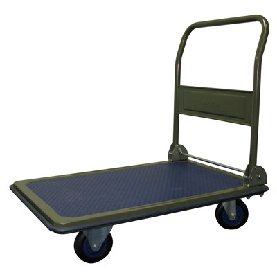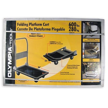The OLYMPIA 600 lb. Capacity Folding Platform Cart features all-steel construction with a textured vinyl deck and oversized wheels and swivel casters for easy maneuverability. It can be easily stored with the flat fold-down handle. The 600 lb. weight capacity makes it a great way to move heavy boxes, small pieces of furniture or any of your other moving needs.