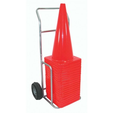 <p>Holds 25 each 28" cones. 10" heavy-duty pneumatic all-terrain wheels. Lifetime warranty! Made in the USA!. Heavy duty construction. Made of 1" heavy gauged galvanized steel. Use indoors or out. Measures 45"H x 27"W x 21 1/2"D. Max cone base = 16 1/4" x 16 1/4". Weighs 150 lbs. loaded. NOTE: This cart is to be used by responsible adults only - not for children. </p>