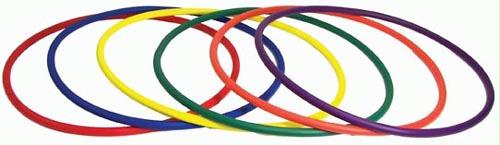 You know the problem with regular hoops. they become the object in the middle of a tug-of-war, pulling causes a kink, and off to the hoop graveyard. These round, hollow, and light hoops with extra thick walls are designed to prevent kinking. 2 each of 6 colors. Made in the USA.