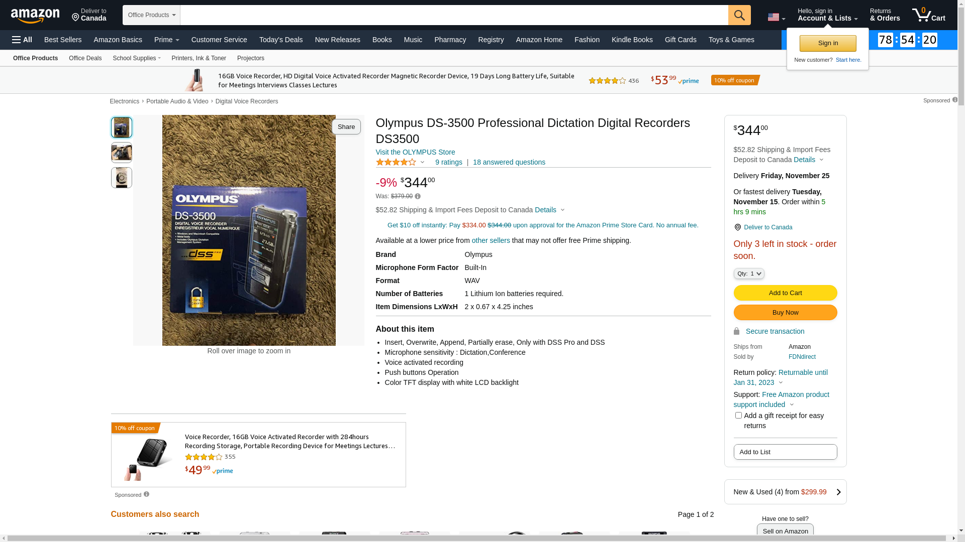 Olympus DS-3500 Digital Recorder Pro