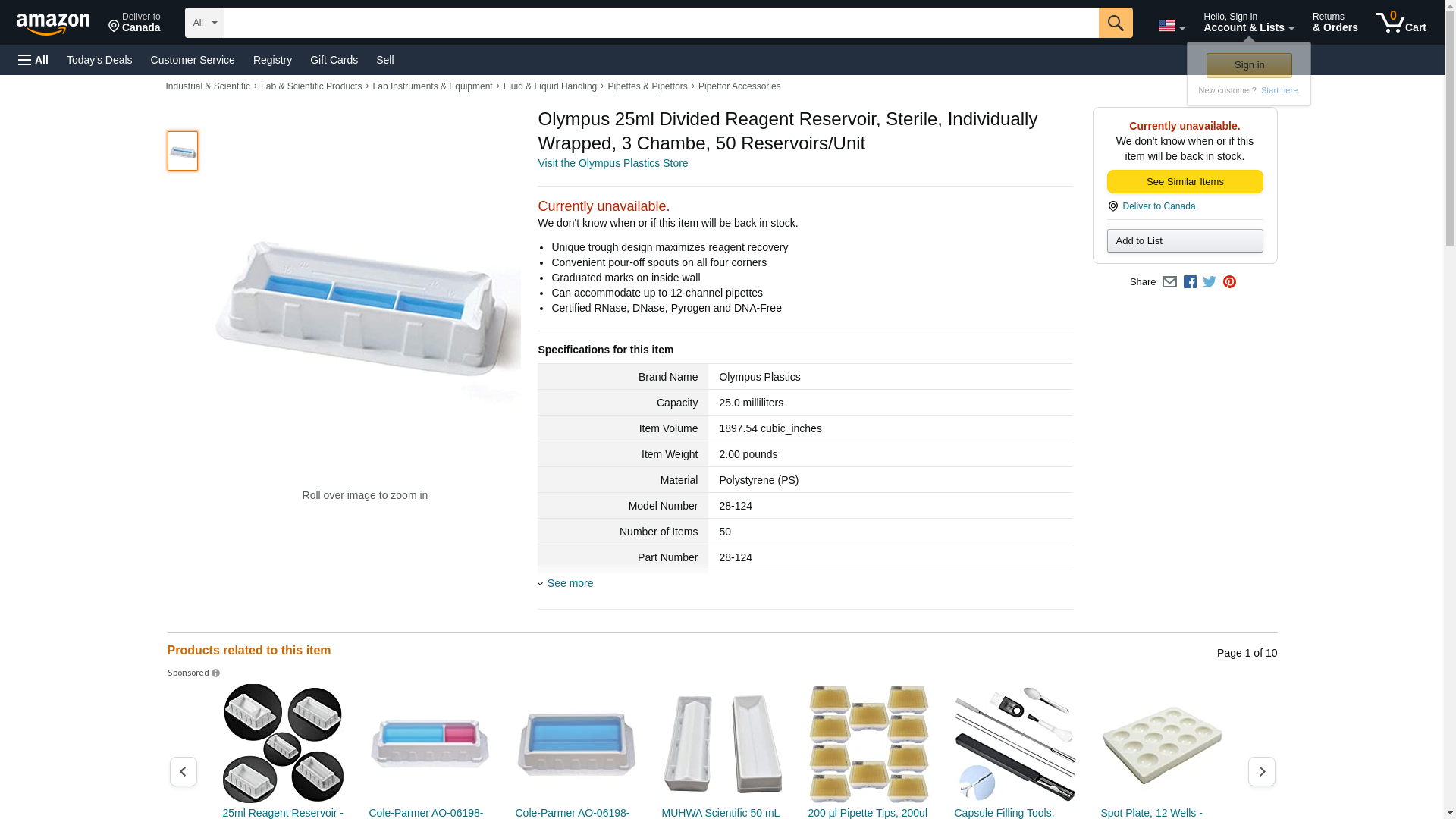 Olympus 25ml Divided Reagent Reservoir, Sterile, Individually Wrapped, 3 Chambe, 50 Reservoirs/Unit