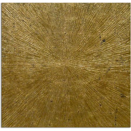 OOOX1177 <br /> <b>Features</b> <br /> <ul> <li>Hand crafted by a single talented artist</li> <li>Made with oil paints on canvas stretched over a thick wooden frame</li> <li>Gold metallic paint: Yes</li> <li>Subject: Abstract/Geometric</li> <li>Size: Large 33"-40"</li> <li>Color: Gold</li> <li>Product Type: Print</li> <li>Primary Art Material: Canvas</li> </ul> <br /> <b>Dimensions</b> <br /> <ul> <li>Overall Height - Top to Bottom: 40"</li> <li>Overall Width - Side to Side: 40"</li> <li>Overall Depth - Front to Back: 1"</li> </ul>