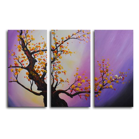 <ul><li>For indoor use only</li><li>3-piece wall art in classic style</li><li>Hand-painted artwork on canvas</li><li>Nature theme in a mix of purple, yellow and brown</li><li>Dimensions: 36W x 24H inches</li></ul>