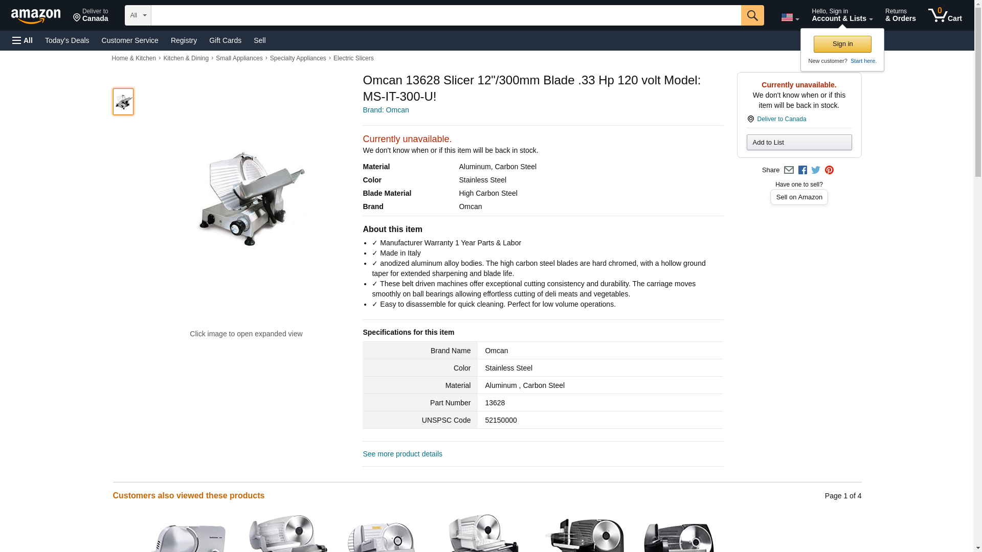 Omcan 13628 Slicer 12"/300mm Blade .33 Hp 120 volt Model: MS-IT-300-U!