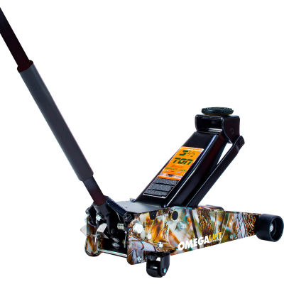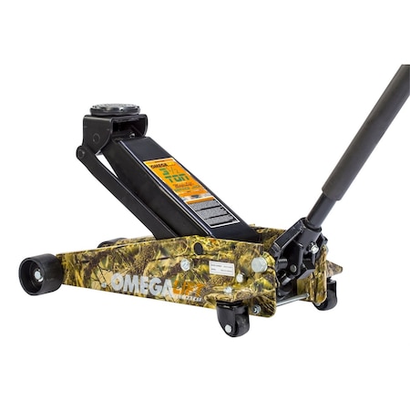 - 29037CAMO is Omega Lift 3.5 Ton heavy duty car floor jack in camouflage that is built with the strength and duability. The heavy gauge side frames resist twisting. It gives you the ability to lift from 5-1/8 inches to 21-1/2 inches.
