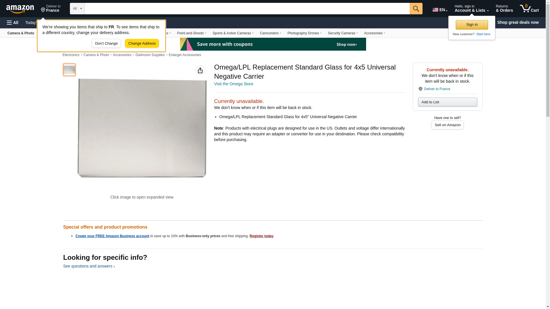 | Feature | Omega/LPL Replacement Standard Glass for 4x5" Universal Negative Carrier |