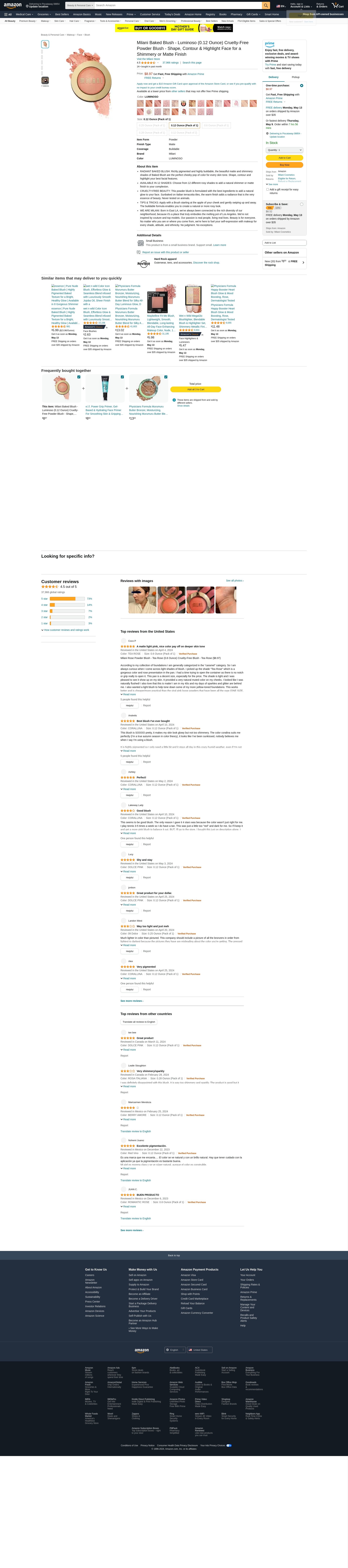 Milani Baked Blush - Luminoso (0.12 Ounce) Cruelty-Free Powder Blush - Shape, Contour & Highlight Face for a Shimmery or Matte Finish: Maxedbuy.com