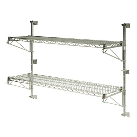 Adjustable wall mount shelving will not take up valuable floor space. Open wire construction promotes ventilation and cleanliness. 2 tier adjustable wall mount unit with 24" wall mount posts