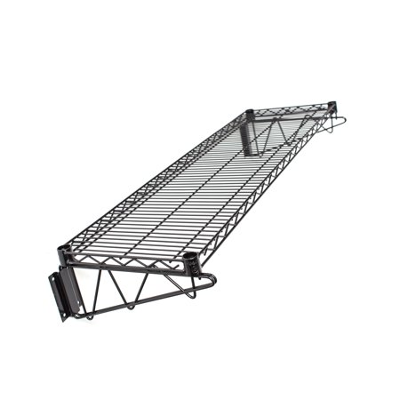 <ul> <li> 1 Tier fixed Black wall mount shelving kit measure 18" x 42" X 7" </li> <li> Open wire construction promotes maximum airflow </li> <li> Assembles in minutes</li> <li> Single shelf bracket mount directly to the wall </li> <li> Brackets have raised notches in the front and rear for shelf stability </li> </ul>