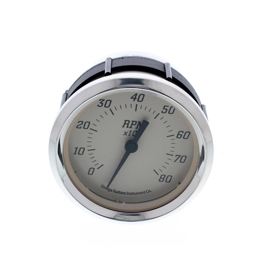 Omega Kustom 8000 RPM Tachometer Gauge, 3-3/8, Timeless Tan