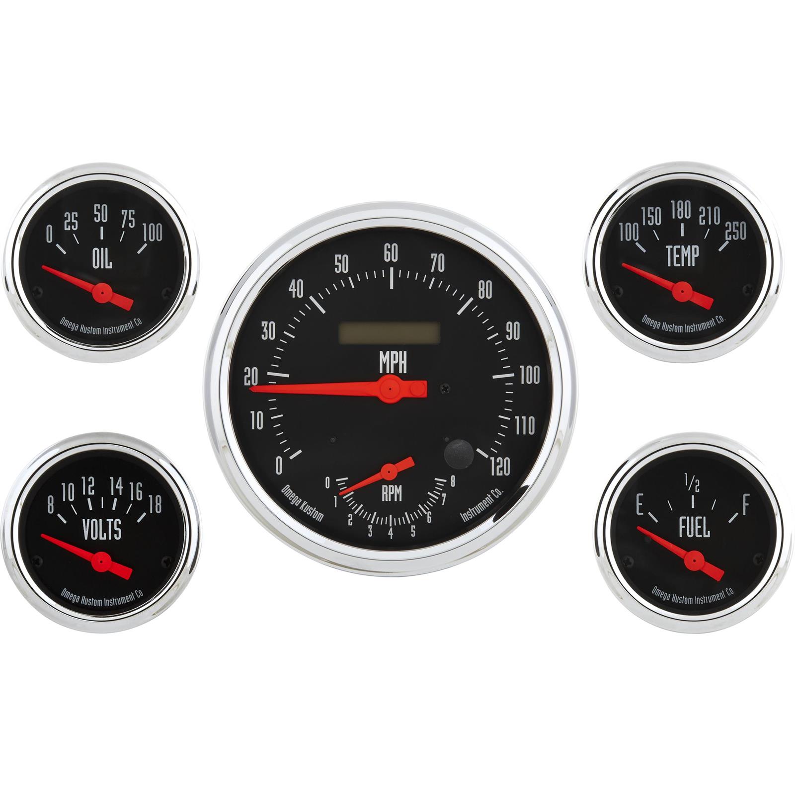 As an Amazon Associate, we earn from qualifying purchases. Omega Kustom 5-Gauge Set, 4-5/8 Inch Speedometer/Tach Combo Omega Kustom Instruments . 91129552T Gallery Attributes Brand name, Manufacturer name, Manufacturer, Attribute01Omega Kustom Instruments Attribute00Select Color Attribute02, Attribute06Analog Attribute03Electric Attribute04, Attribute07Dash Cluster Attribute05, Attribute13Select Color to see Attribute085 Attribute092-1/16 Inch Attribute10Chrome Attribute11, Attribute14, Attribute16, Attribute17, Attribute21, Attribute22, Attribute23Yes Attribute12White Attribute15, Attribute18, Attribute19, Attribute20No Attribute24Includes sending units for all except speedometer. All gauges are electric. AttributeKey00, AttributeKey05MFG. Part # AttributeKey01Brand AttributeKey02, AttributeKey06Gauge Series AttributeKey03Gauge Style AttributeKey04, AttributeKey07Gauge Set Design AttributeKey08Number of Gauge Housings AttributeKey09, length_Attrib, width_AttribAuxiliary Gauge Diameter AttributeKey10Bezel Finish AttributeKey11Lighted AttributeKey12Light Color AttributeKey13Lettering Color AttributeKey14Tachometer Included AttributeKey15Oil Temperature Gauge Included AttributeKey16Water Temperature Gauge Included AttributeKey17Fuel Level Gauge Included AttributeKey18Ammeter Gauge Included AttributeKey19Includes Tubing AttributeKey20Includes Light Covers AttributeKey21Hardware Included AttributeKey22Fuel Sender Included AttributeKey23Oil Pressure Sender Included AttributeKey24Notes DimensionUnitinch Extra Product NameOmega Kustom 5-Gauge Set, 4-5/8 Inch Speedometer/Tach Combo diameter, length, width2.0625 keywordsOmega Kustom Instruments Gauge Sets, Speedway Motors 91129552T Gauge Sets, Speedway 91129552T, Gauge Sets, Omega Kustom Instruments moq, multiple, tierMinQty11 MPN, SKU91129552T qtyInStock-2 qtySourceFieldMap snippetOmega Kustom 5-Gauge Set, 4-5/8 Inch Speedometer/Tach Combo made by Omega Kustom Instruments, for as low as $487.99. tierPrice1487.99 Distributor offers SellerSKUMOQIn stockMultiplePrices speedwaymotors.com91129552T1-211 @ $487.99