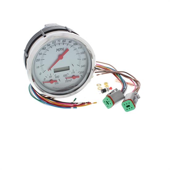Omega Kustom 5" Speedometer w/Oil Pressure & Water Temp, Silver