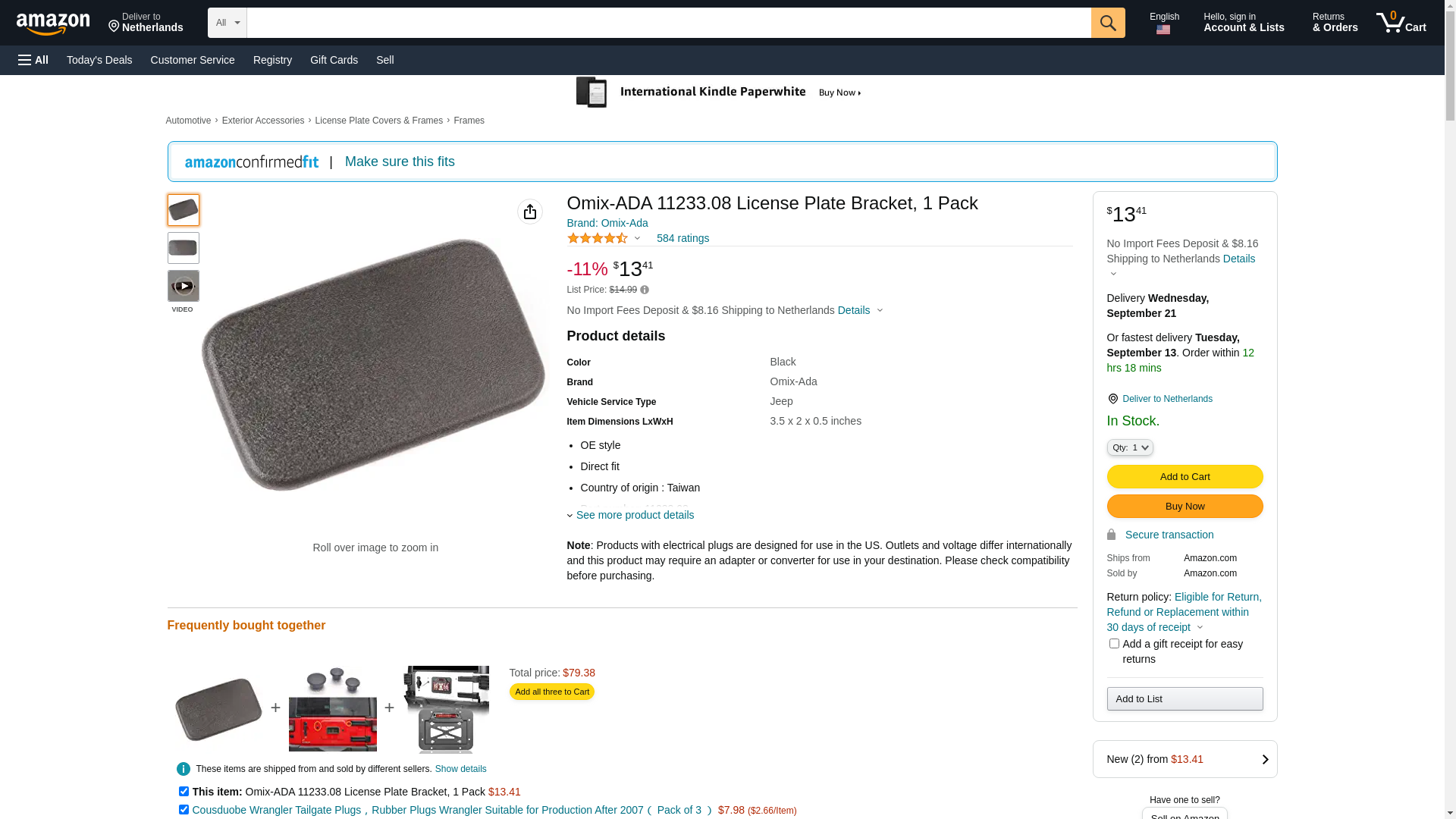 Omix-Ada | 11233.08 | License Plate Bracket Delete | OE Reference: 55397112AA | Fits 2007-2018 Jeep Wrangler JK