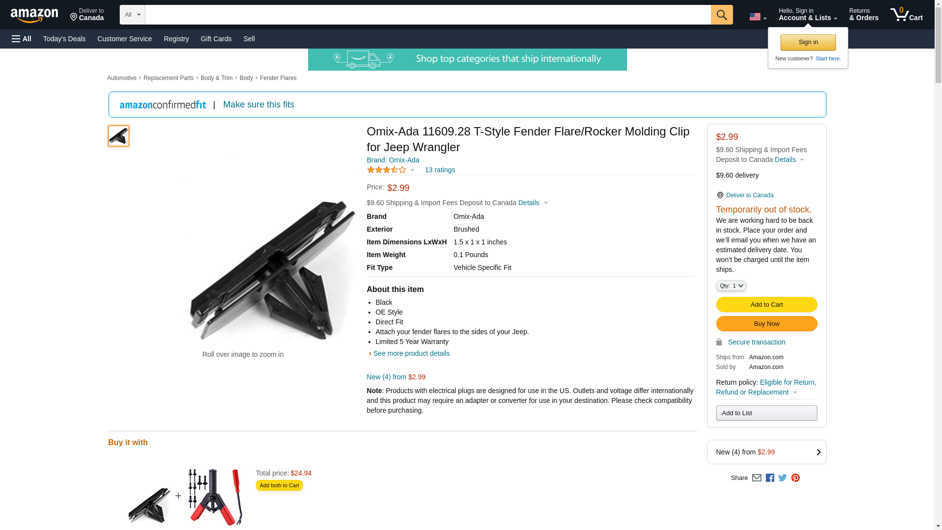 ![]() automotivestuff.com | OMIXADA-11609.28 | 1 | -2 | 1 | 1 @ $17.20 |