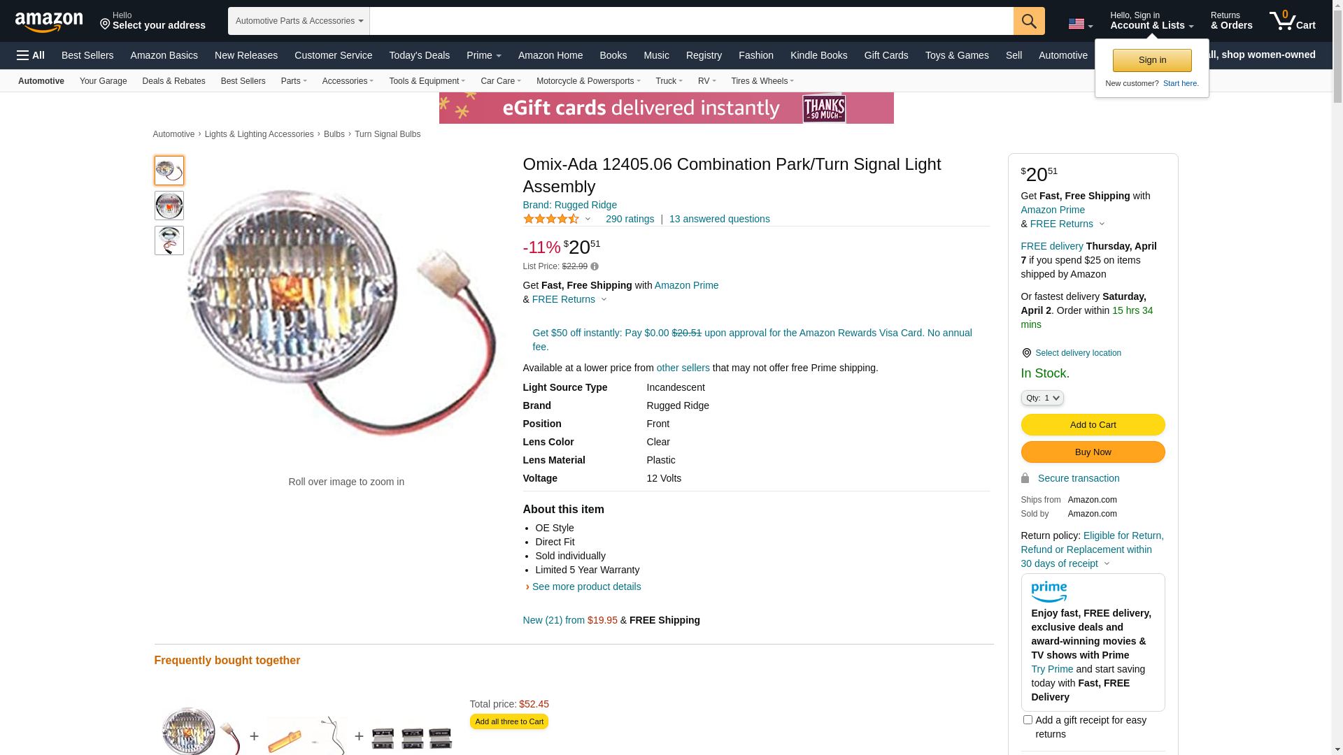 - OMIX 12405.06 | Turn Signal/Parking Light Assembly