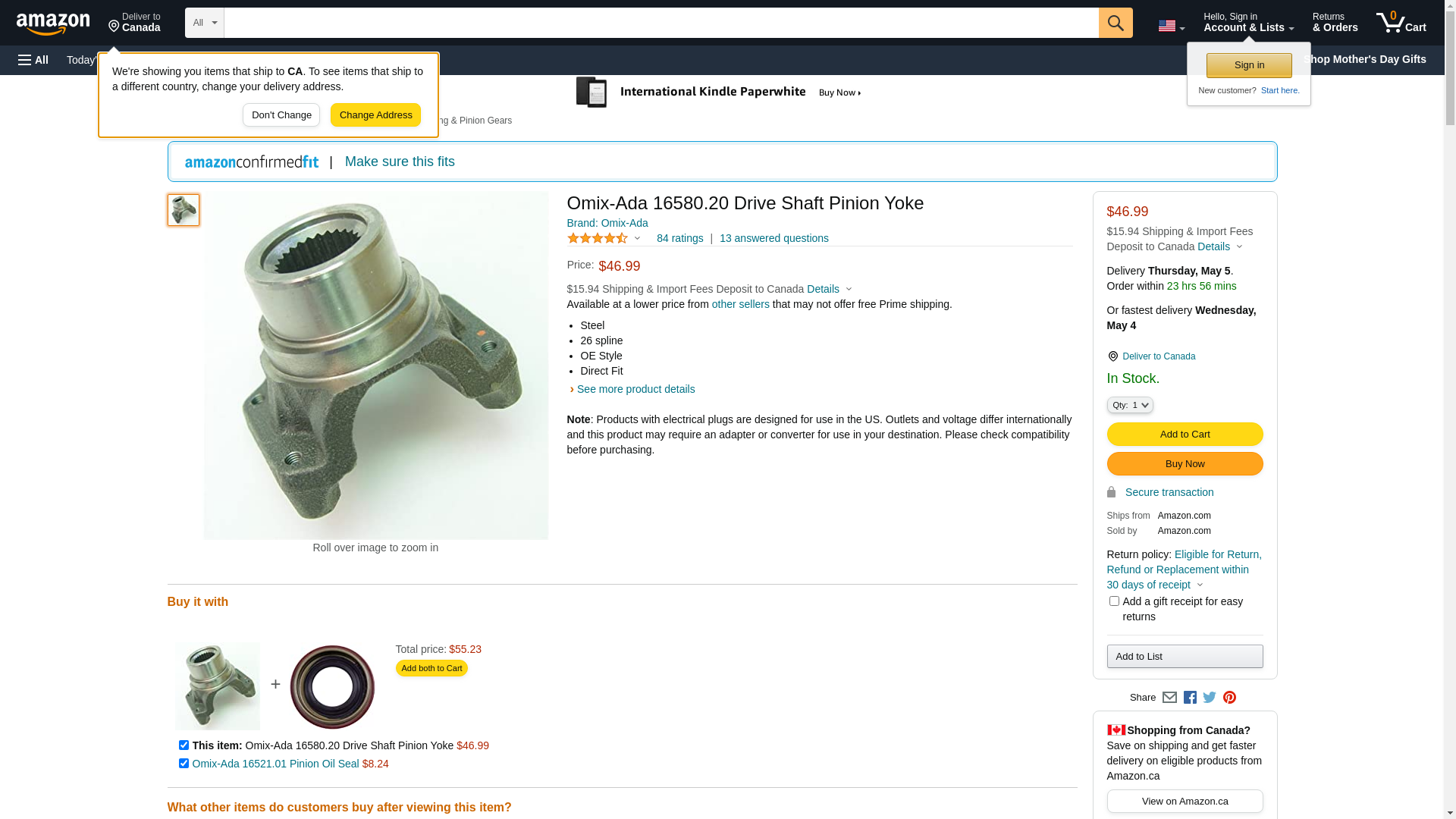 Omix-Ada 16580.20 Drive Shaft Pinion Yoke