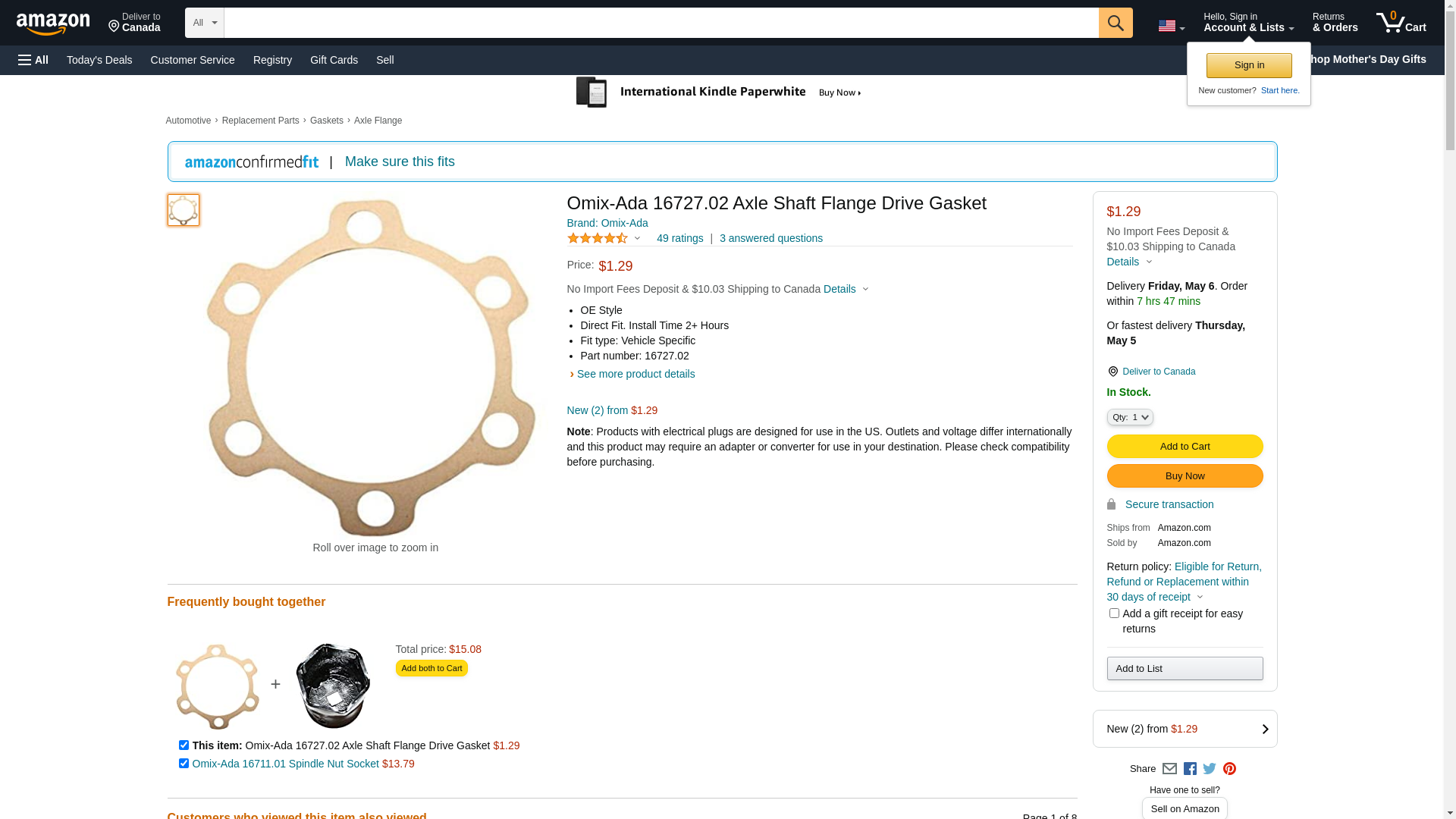 - OMIX 16727.02 | Axle Flange Gasket, 6 Bolt Hubs