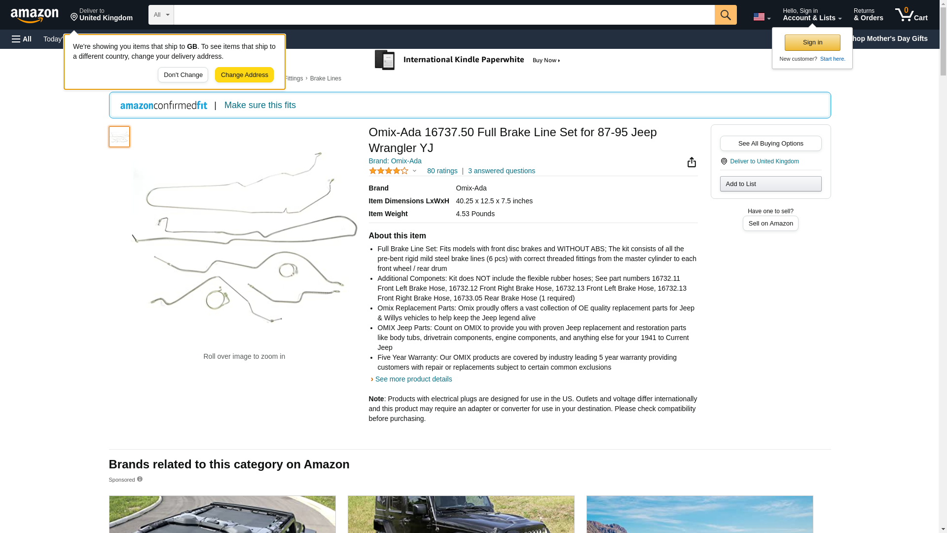 Omix-Ada 16737.50 Brake Line and Fitting Kit