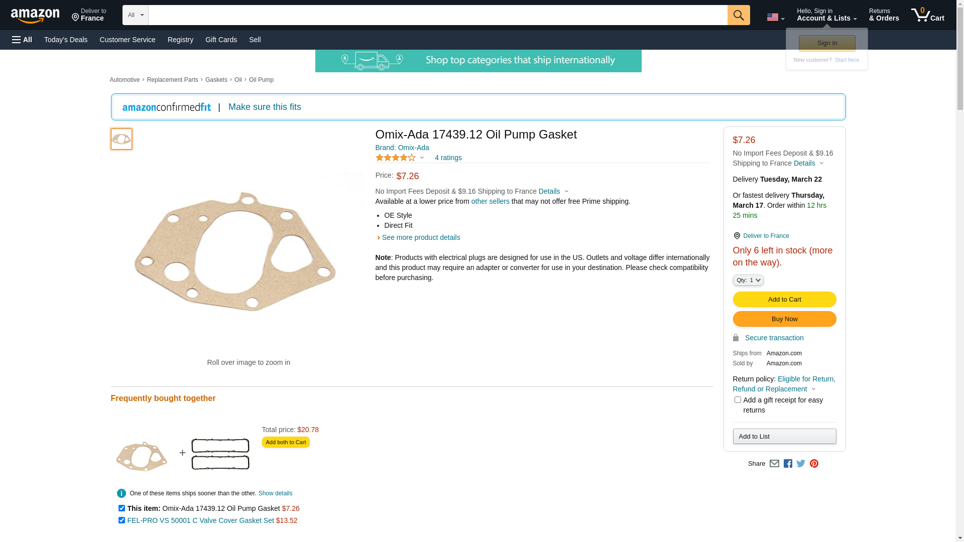 - OMIX 17439.12 | Engine Oil Pump Gasket, AMC V8