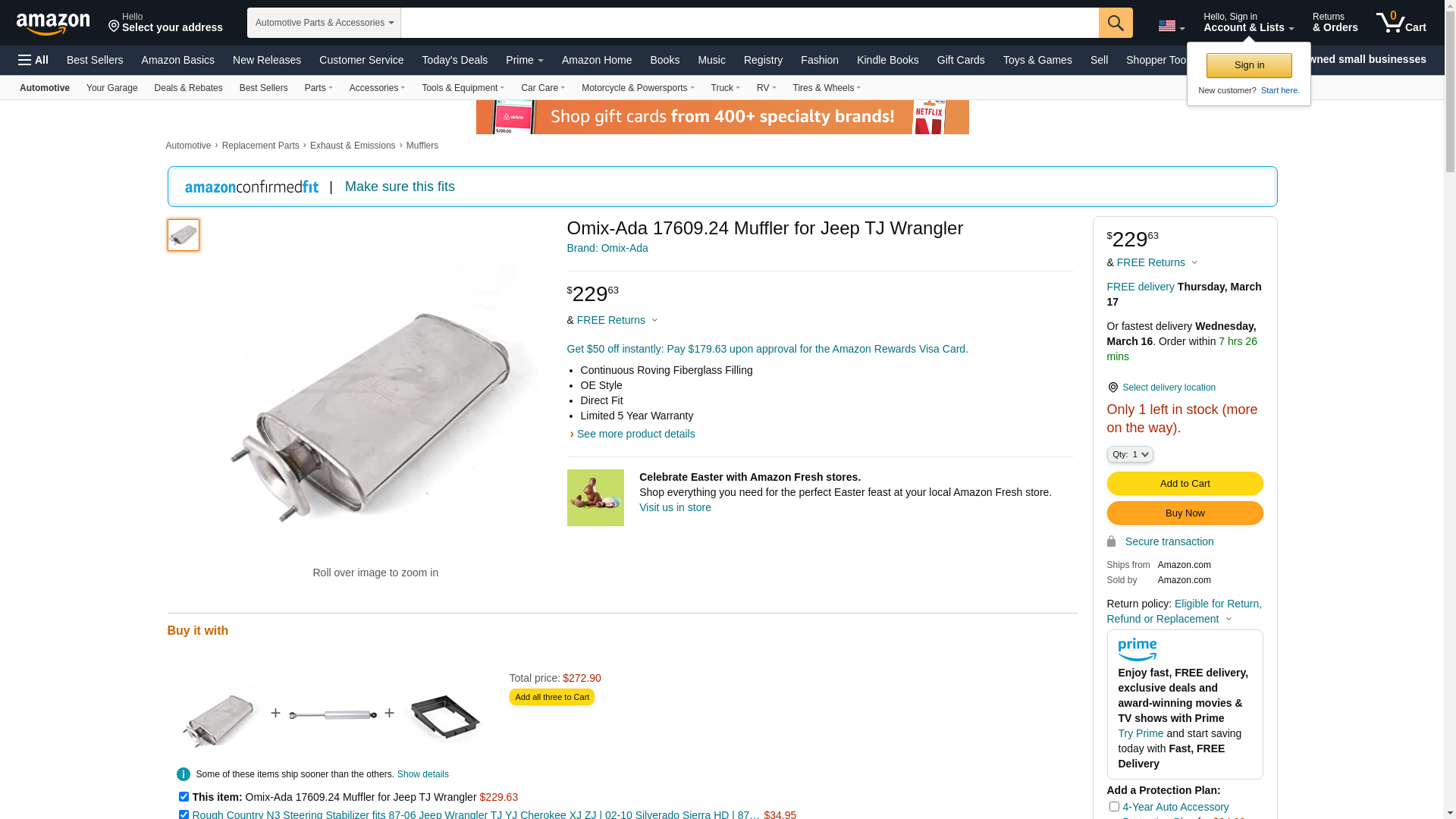 ![]() automotivestuff.com | OMIXADA-17609.24 | 1 | -2 | 1 | 1 @ $256.55 |