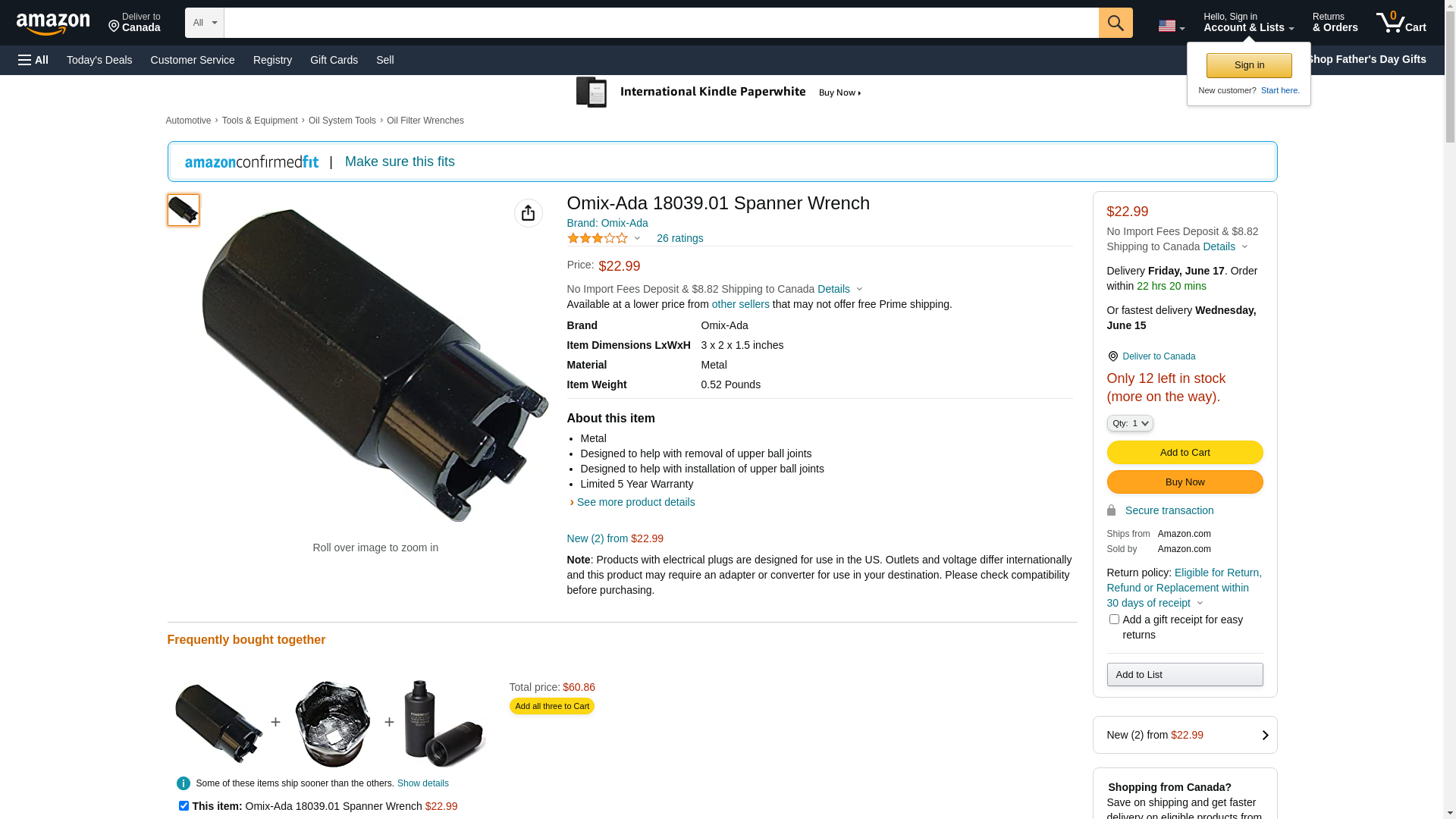 | 1-373-18039.01 | 1 | Only 1 left in stock and more can be backordered | 1 | 1 @ $17.99 | |