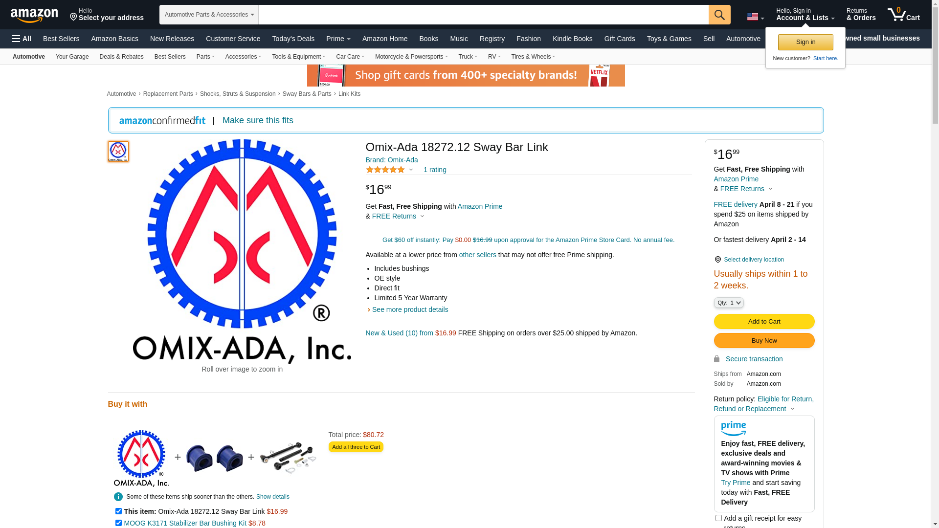 | Summit Racing | OMX-1827212 | 1 | -2 | 1 | 1 @ $9.99 |