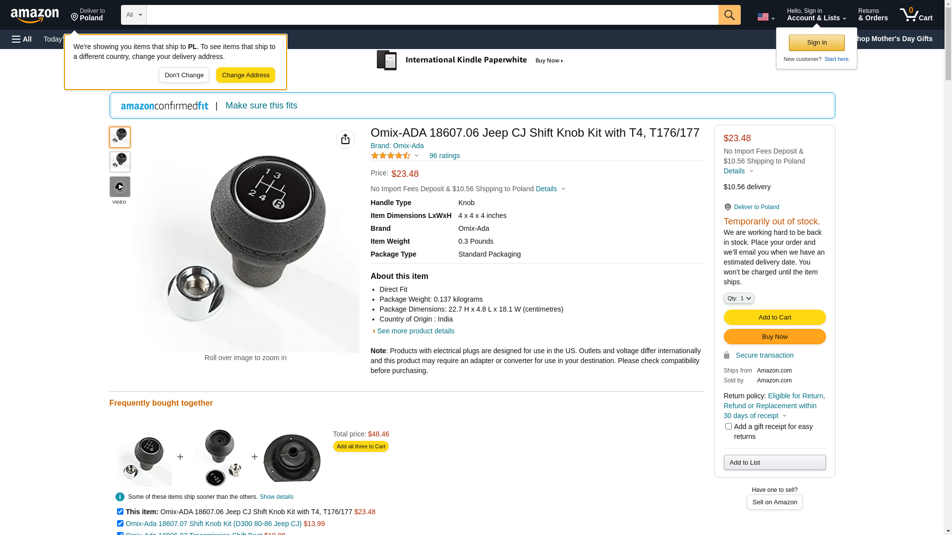 - OMIX 18607.06 | Transfer Case Shift Knob Kit, T4/T176/T177