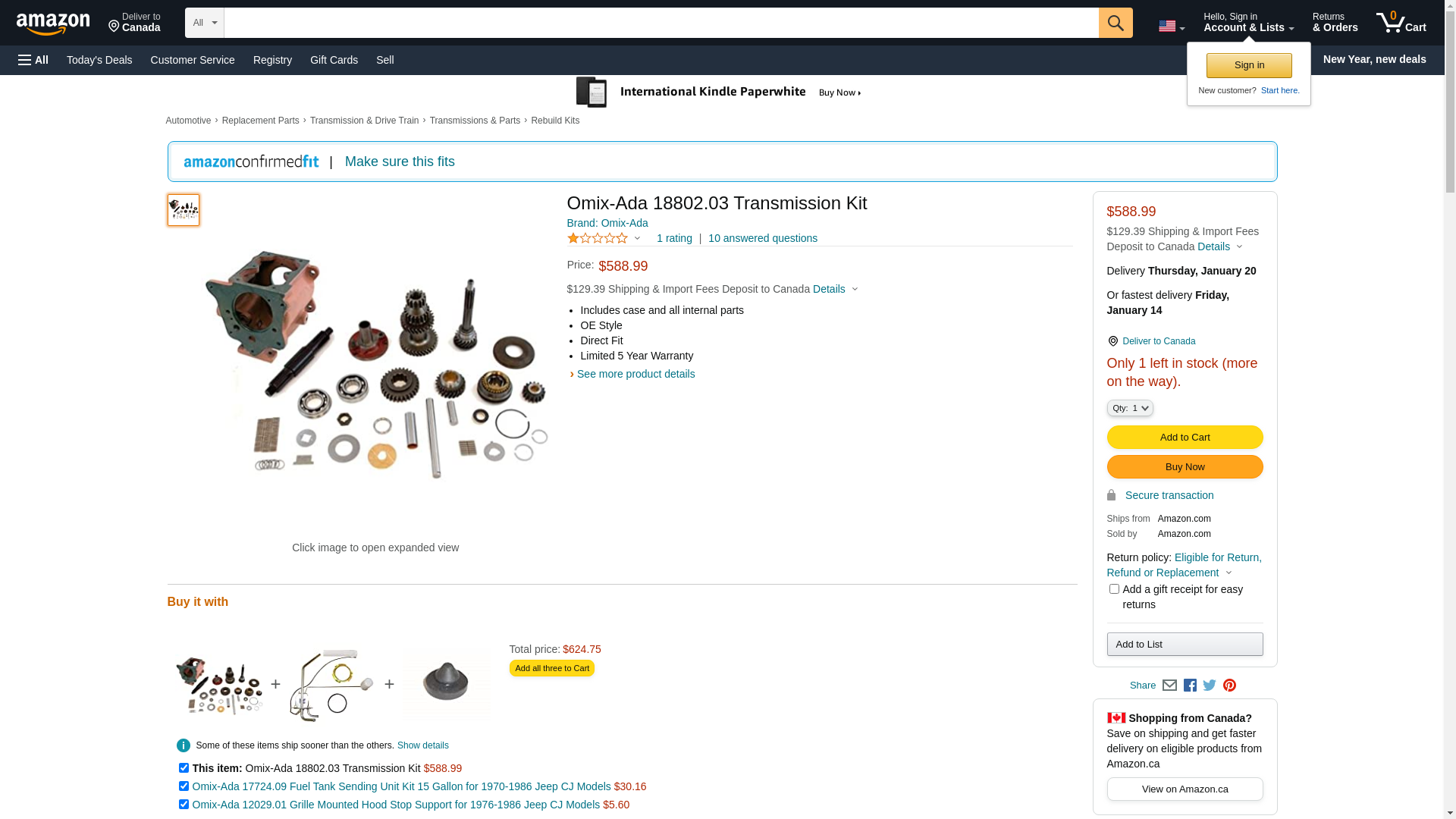 ![]() automotivestuff.com | OMIXADA-18802.03 | 1 | -2 | 1 | 1 @ $827.28 |