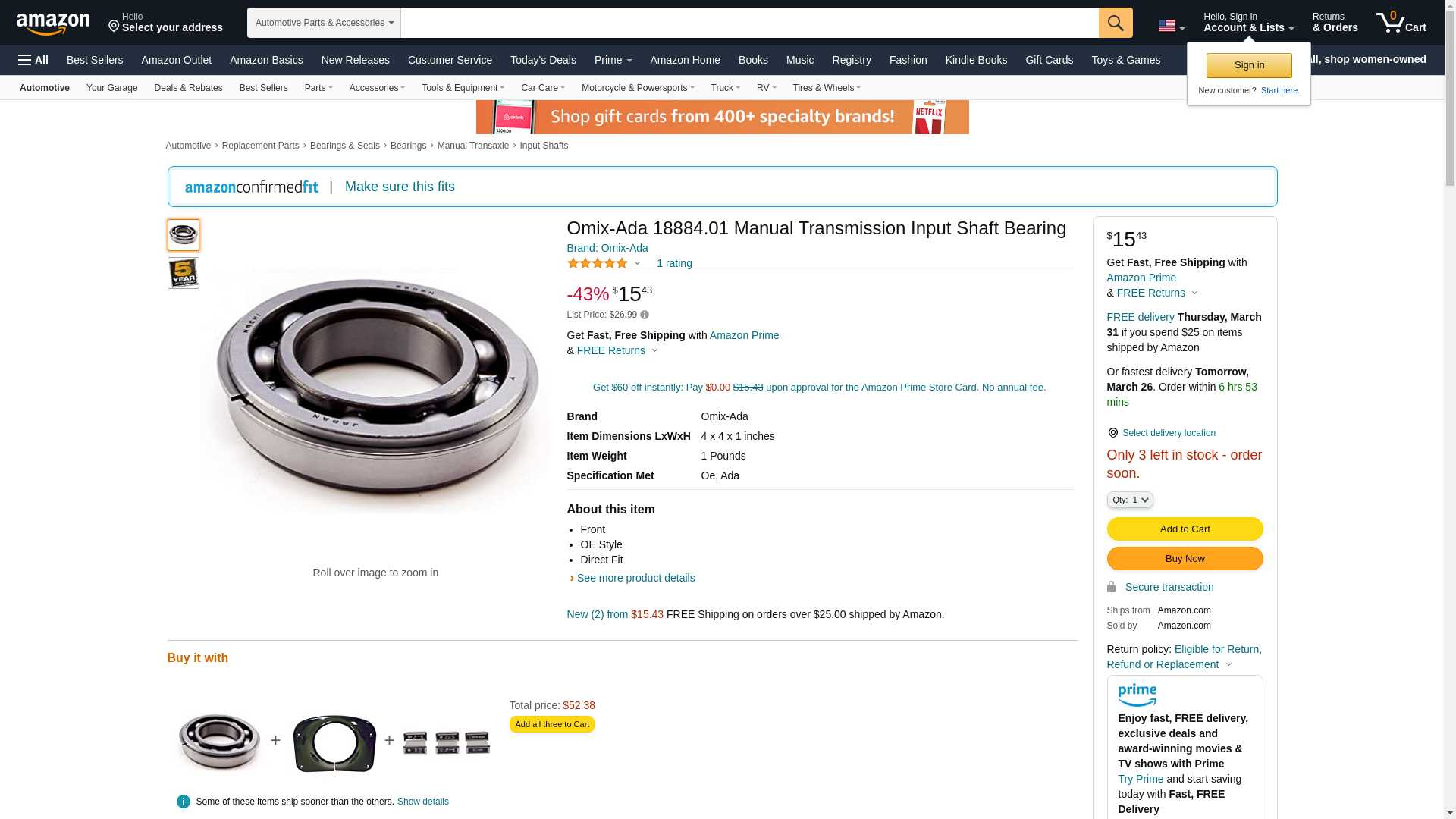 | Summit Racing | OMX-1888401 | 1 | -2 | 1 | 1 @ $16.99 |